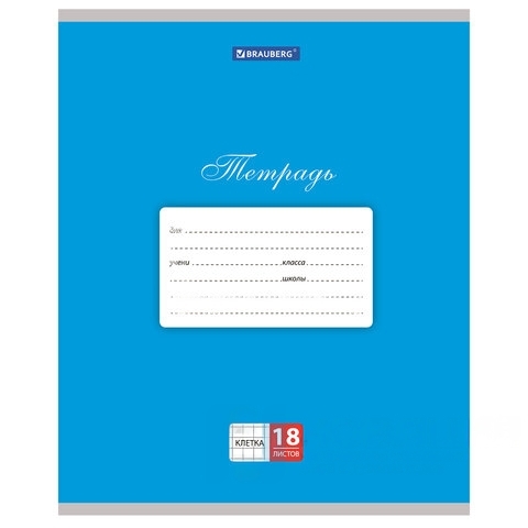 Тетрадь 18 л. BRAUBERG КЛАССИКА, клетка, обложка картон, СИНЯЯ, 104731