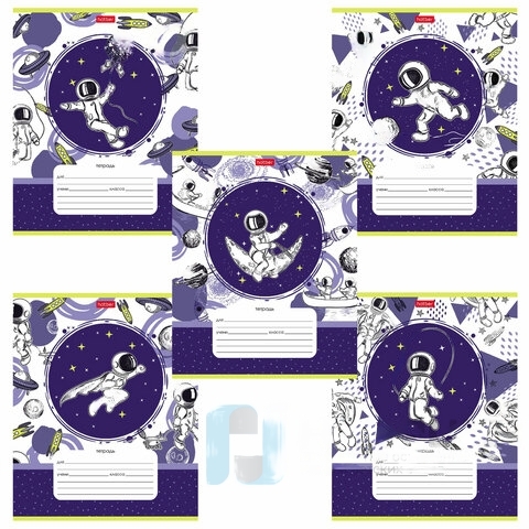 Тетрадь 12 л. HATBER клетка, обложка картон, "Астронавт" (5 видов в спайке), 12Т5В1
