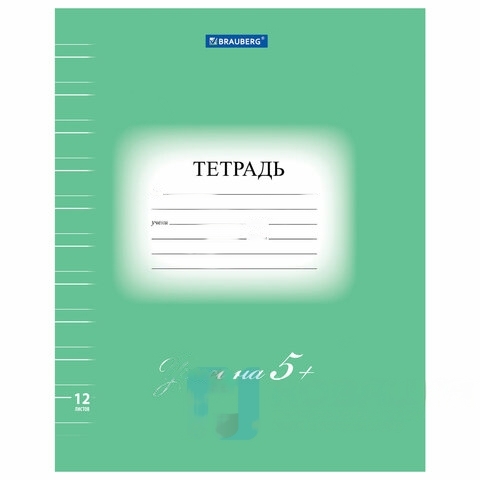 Тетрадь 12 л. BRAUBERG ЭКО "5-КА", узкая линия, обложка плотная мелованная бумага, ЗЕЛЕНАЯ, 104765