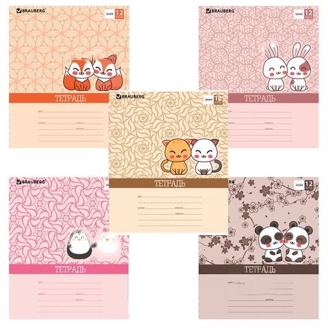Тетрадь 12 л. BRAUBERG, линия, обложка картон, ПАРОЧКА, 104778
