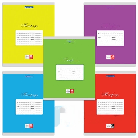 Тетрадь 18 л. BRAUBERG КЛАССИКА, клетка, обложка картон, АССОРТИ (5 видов), 401991