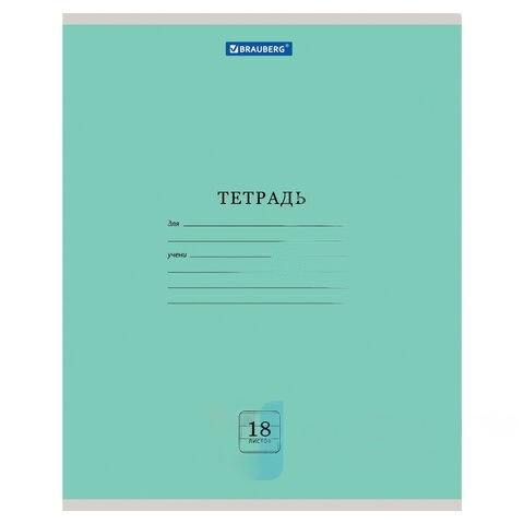 Тетрадь 18 л. BRAUBERG "ЭКО", клетка, обложка плотная мелованная бумага, ЗЕЛЕНАЯ ПАСТЕЛЬНАЯ, 105675