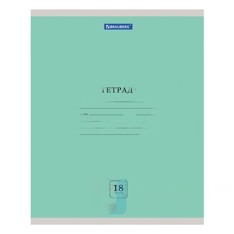 Тетрадь 18 л. BRAUBERG "ЭКО", линия, обложка плотная мелованная бумага, ЗЕЛЕНАЯ ПАСТЕЛЬНАЯ, 105677