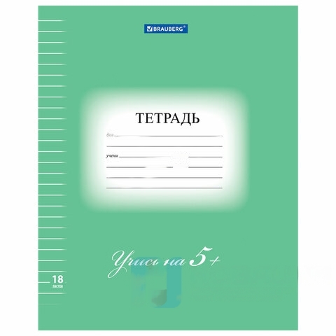Тетрадь 18 л. BRAUBERG ЭКО "5-КА", линия, обложка плотная мелованная бумага, ЗЕЛЕНАЯ, 402989