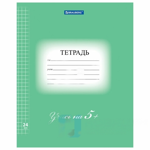 Тетрадь 24 л. BRAUBERG ЭКО "5-КА", клетка, обложка плотная мелованная бумага, ЗЕЛЕНАЯ, 403003