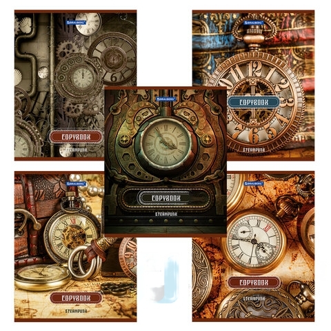 Тетрадь А5, 48 л., BRAUBERG, клетка, металлизированный картон, ВРЕМЯ, 403042