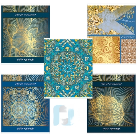 Тетрадь А5, 48 л., BRAUBERG, клетка, тиснение фольгой, УЗОРЫ, 403048