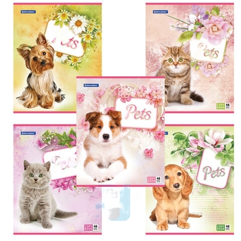 Тетрадь А5, 48 л., BRAUBERG, клетка, обложка картон, ЛЮБИМЧИКИ, 401816