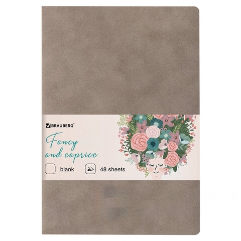 Тетрадь-скетчбук 48 л. обложка кожзам под замшу, сшивка, A5 (147х210мм), 70 г/м2, СЕРЫЙ, BRAUBERG CAPRISE, 403862