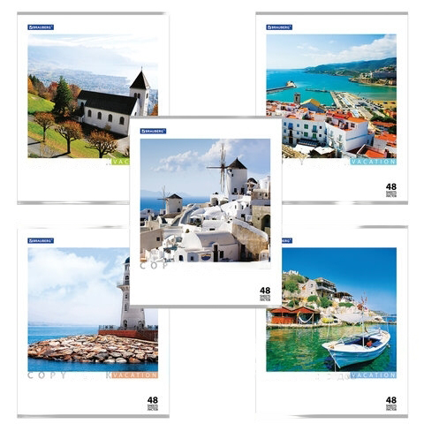 Тетрадь А5, 48 л., BRAUBERG, клетка, обложка картон, КАНИКУЛЫ, 401819
