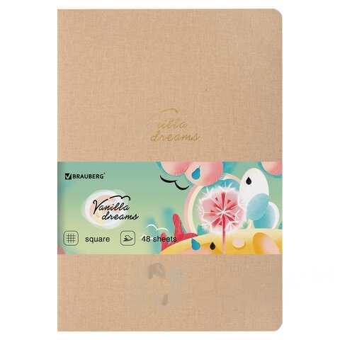 Тетрадь 48 л. в клетку обложка кожзам под лён, сшивка, A5 (147х210мм), БЕЖЕВЫЙ, BRAUBERG PASTEL, 403871