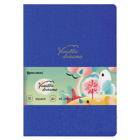 Тетрадь 48 л. в клетку обложка кожзам под лён, сшивка, A5 (147х210мм), СИНИЙ, BRAUBERG PASTEL, 403872