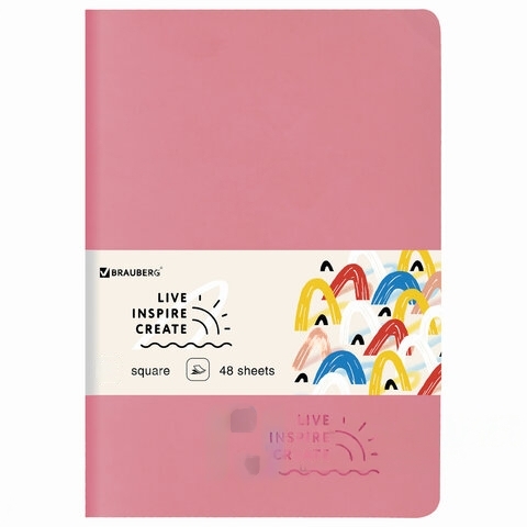 Тетрадь 48 л. в клетку обложка кожзам SoftTouch, сшивка, A5 (147х210мм), РОЗОВЫЙ, BRAUBERG RAINBOW, 403879