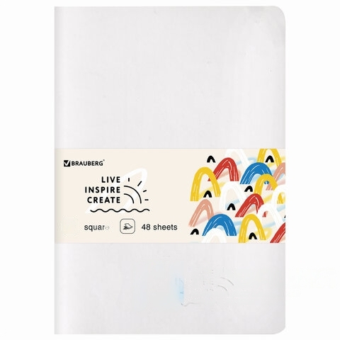 Тетрадь 48 л. в клетку обложка кожзам SoftTouch, сшивка, A5 (147х210мм), БЕЛЫЙ, BRAUBERG RAINBOW, 403881