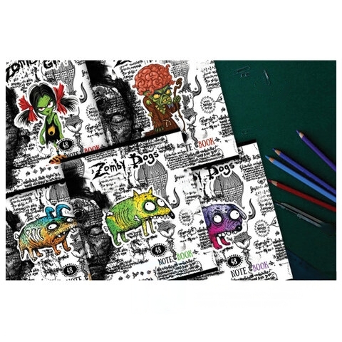 Тетрадь А5, 48 л., ПЗБМ, скоба, клетка, конгрев, выборочный TWIN лак, "Зомбаки" (5 видов), 028985