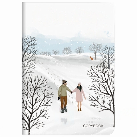 Тетрадь 40 л. в клетку обложка SoftTouch, бежевая бумага 70 г/м2, сшивка, А5 (147х210 мм), ЗИМНЯЯ ПРОГУЛКА, BRAUBERG, 403778