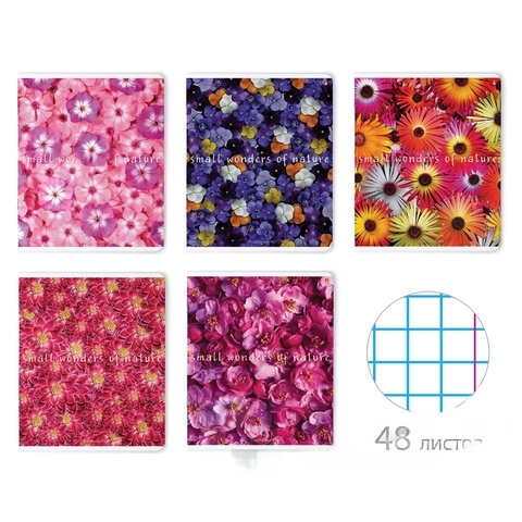 Тетрадь А5 48 л. АЛЬТ скоба, клетка, глянцевый лак, "Цветочный паттерн" (5 видов), 7-48-546