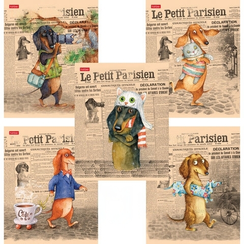 Тетрадь А5, 48 л., HATBER, скоба, клетка, обложка картон, ТаксаLIFE (5 видов в спайке), 48Т5В1