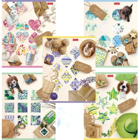 Тетрадь А5, 48 л., HATBER, скоба, клетка, обложка картон, "Стиль-настроение" (5 видов в спайке), 48Т5В1