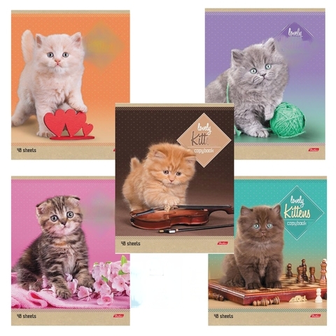 Тетрадь А5, 48 л., HATBER, скоба, линия, обложка картон, "КОТЯТА" (5 видов в спайке), 48Т5В2, T242407