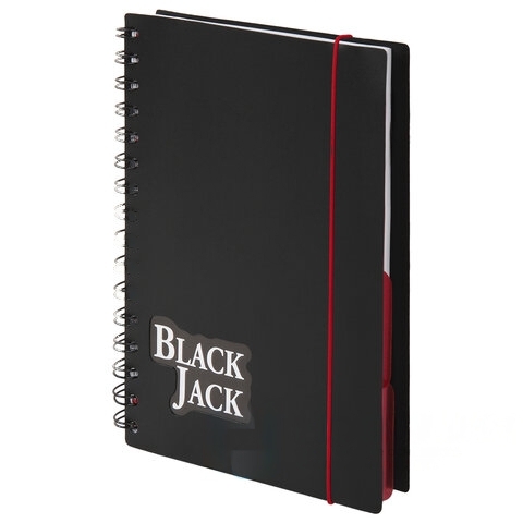 Тетрадь-блокнот 150 л., A5, 170x215 мм, BRAUBERG, клетка, обложка пластиковая, на резинке, 4 разделения, "Black Jack", 401793