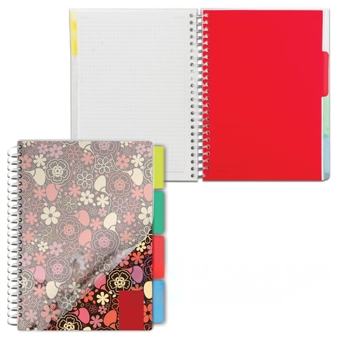 Тетрадь-блокнот 150 л., A5, 170x215 мм BRAUBERG, клетка, гребень, обложка пластиковая, 4 разделителя, "Foxy Lady", 401794