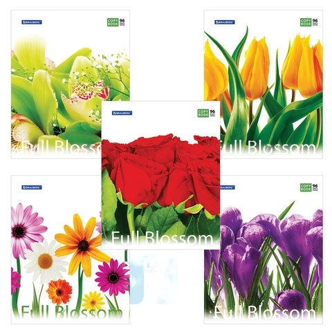 Тетрадь А5, 96 л., BRAUBERG, клетка, обложка картон, ЦВЕТЫ, 401845