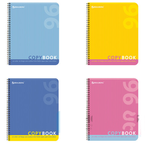 Тетрадь А5, 96 л., BRAUBERG, гребень, клетка, обложка картон, ОДИН ЦВЕТ, 401878