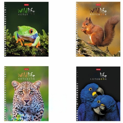 Тетрадь А5, 80 л., HATBER гребень, клетка, обложка картон, "ЗОО_мир" (4 вида в спайке), 80Т5В1гр