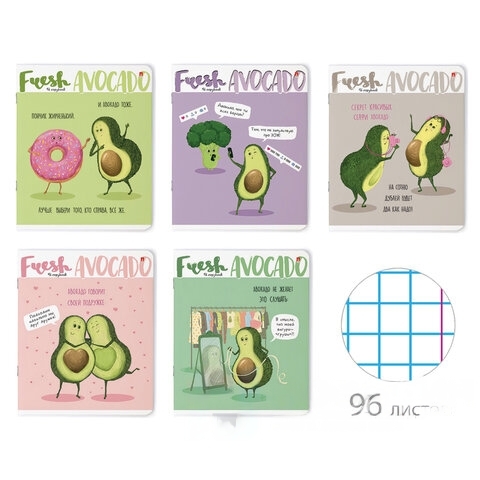 Тетрадь А5 96 л. АЛЬТ скоба, клетка, гибридный лак, "Авокадо" (5 видов), 7-96-980
