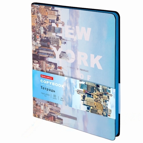 Тетрадь А5 (168х208 мм), 80 л., сшивка, клетка, под кожу, BRAUBERG VISTA, "New York", 403922