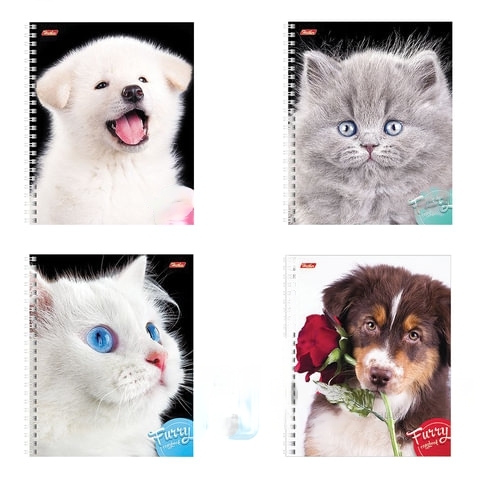 Тетрадь А5, 80 л., HATBER, гребень, клетка, обложка картон, "ПУШИСТЫЕ МОРДОЧКИ" (4 вида), 80Т5В1гр, T213551