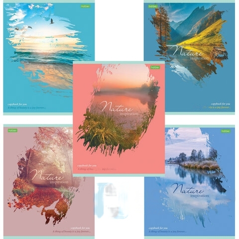Тетрадь А5, 80 л., HATBER-ECO, скоба, клетка, обложка картон, "Nature", 80Т5C1