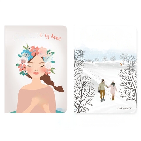 Тетради-скетчбуки 60 л. обложка SoftTouch, НАБОР 2 шт., бежевая бумага 70 г/м2, сшивка, B5 (179х250 мм), ROMANTIC, BRAUBERG, 403832