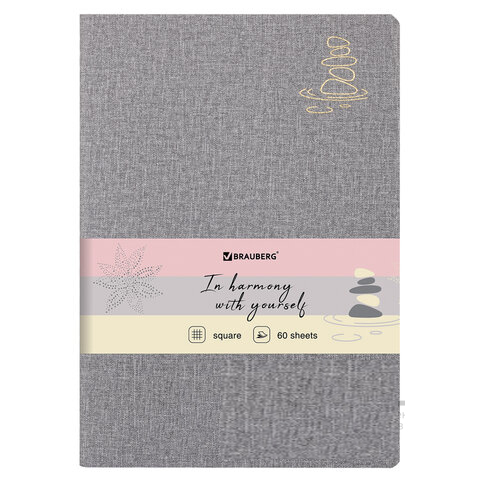 Тетрадь 60 л. в клетку обложка кожзам под рогожку, сшивка, B5 (179х250мм), СЕРЫЙ, BRAUBERG HARMONY, 403839