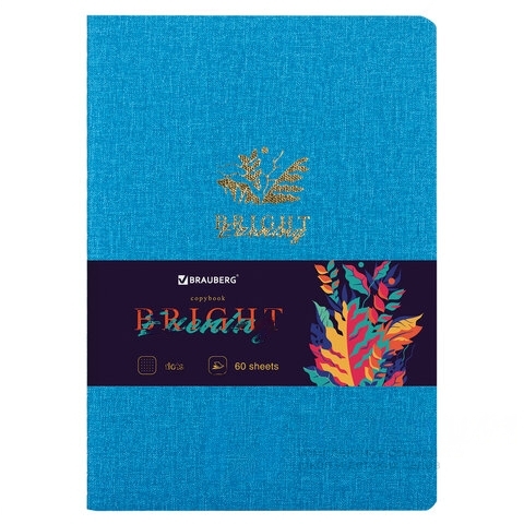 Тетрадь 60 л. в точку обложка кожзам под рогожку, сшивка, B5 (179х250мм), ГОЛУБОЙ, BRAUBERG BRIGHT, 403849