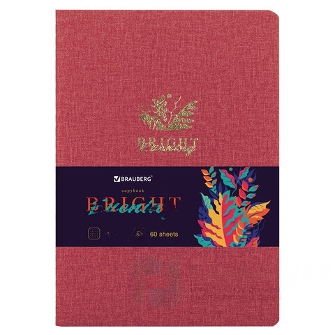Тетрадь 60 л. в точку обложка кожзам под рогожку, сшивка, B5 (179х250мм), КРАСНЫЙ, BRAUBERG BRIGHT, 403850