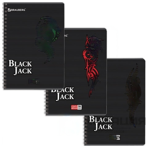 Тетрадь А4, 96 л., BRAUBERG, гребень, клетка, выборочный лак, "БЛЭК ДЖЭК", 401854