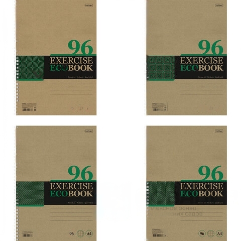 Тетрадь А4 96 л., HATBER, гребень, клетка, обложка крафт, подложка, "Экобук" (4 вида в спайке), 96Т4В1гр