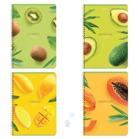 Тетрадь А4, 96 л., BRAUBERG, гребень, клетка, матовая ламинация, "Exotic", 404062