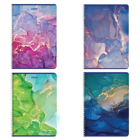 Тетрадь А4, 96 л., BRAUBERG, гребень, клетка, матовая ламинация, "Marble", 404063