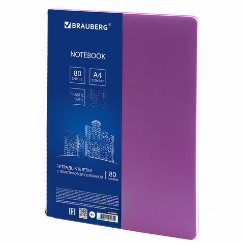 Тетрадь А4, 80 листов, BRAUBERG "Metropolis", спираль пластиковая, клетка, обложка пластик, ФИОЛЕТОВЫЙ, 403394