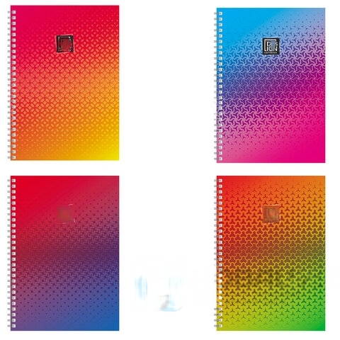 Тетрадь А4, 80 л., ПЗБМ, гребень, клетка, фольга, TWIN лак, "Градиент" (4 вида), 028160