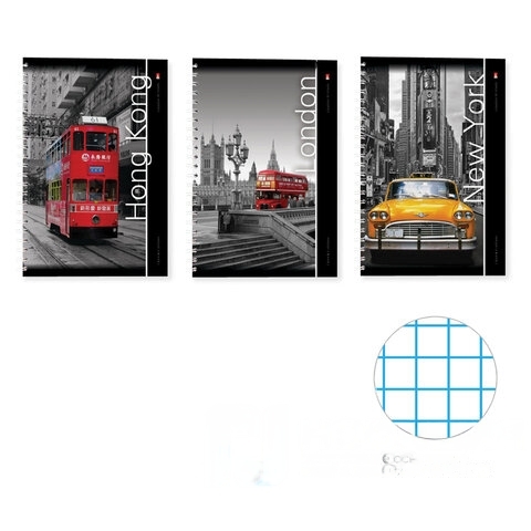 Тетрадь А4 80 л. АЛЬТ гребень, клетка, глянцевая ламинация, "Города" (3 вида), 7-80-001