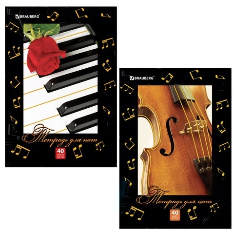 Тетрадь для нот А4, 40 л., BRAUBERG, обложка мелованный картон, вертикальная, 2 вида, 125418