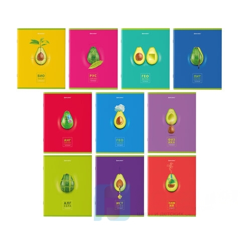 Тетради предметные, КОМПЛЕКТ 10 ПРЕДМЕТОВ, AVOCADO, 48 л., глянцевый УФ-лак, BRAUBERG, 404325