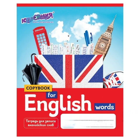 Тетрадь-словарь для записи английских слов А5 48 л., скоба, клетка, ЮНЛАНДИЯ, справка, 403566