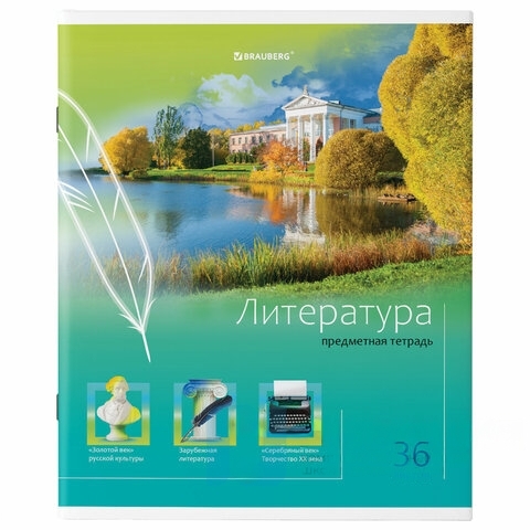 Тетрадь предметная "ЯРКАЯ", 36 л., обложка мелованная бумага, ЛИТЕРАТУРА, линия, BRAUBERG, 404232