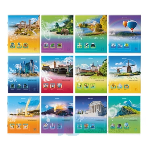 Тетради предметные, КОМПЛЕКТ 12 ПРЕДМЕТОВ, "ЯРКАЯ", 36 л., плотная мелованная бумага, BRAUBERG, 404321