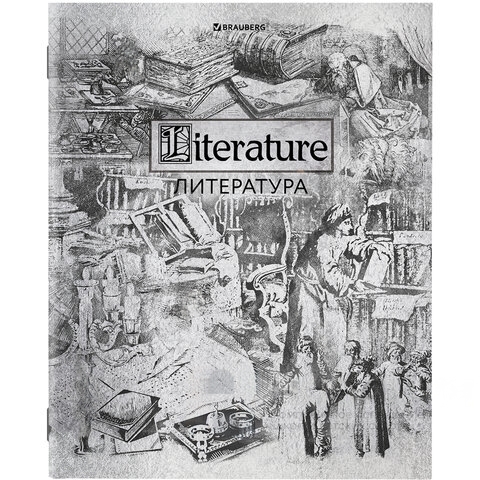 Тетрадь предметная "SILVER" 48 л., С СЕРЕБРЯНОЙ ОБЛОЖКОЙ, ЛИТЕРАТУРА, линия, подсказ, BRAUBERG,404020